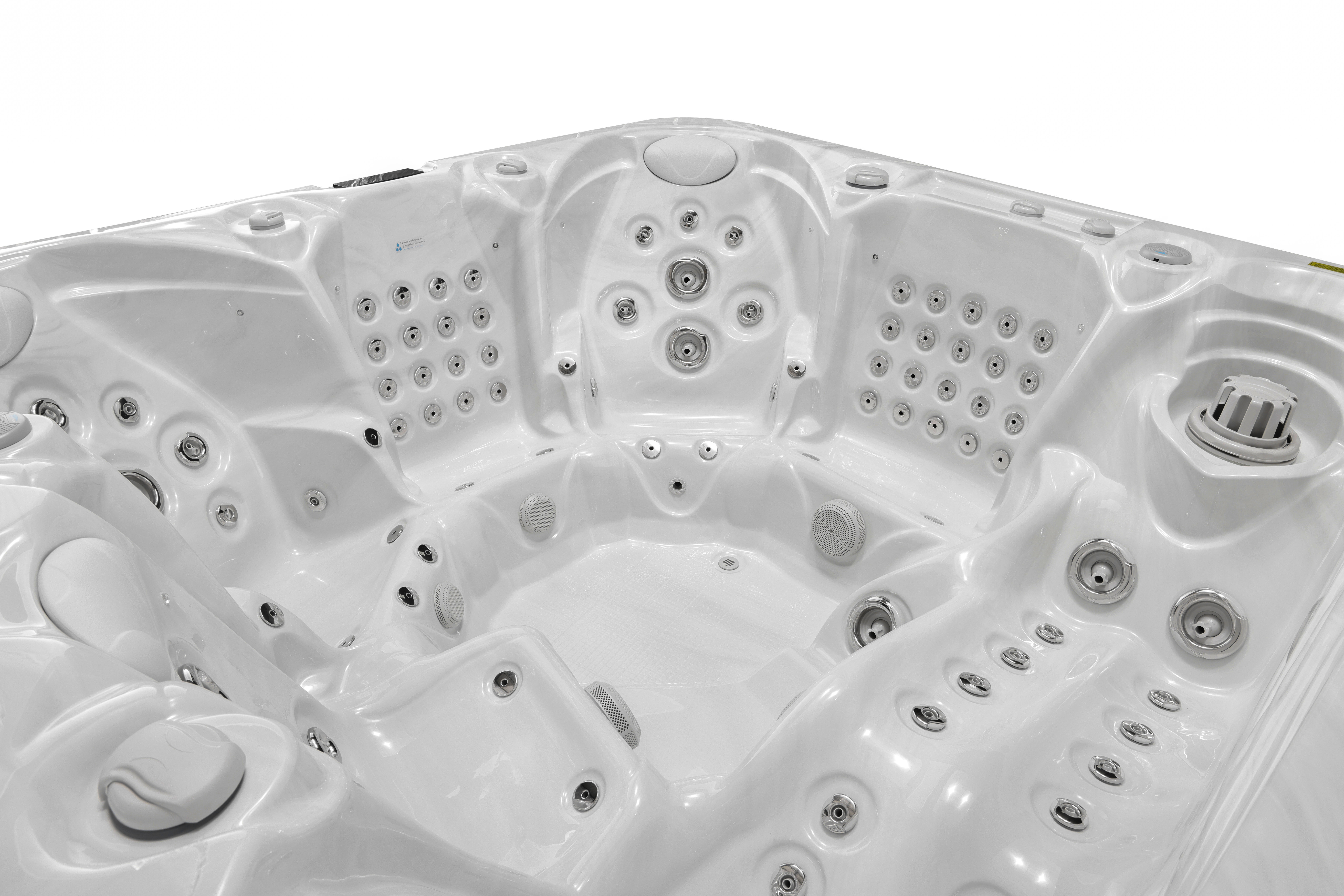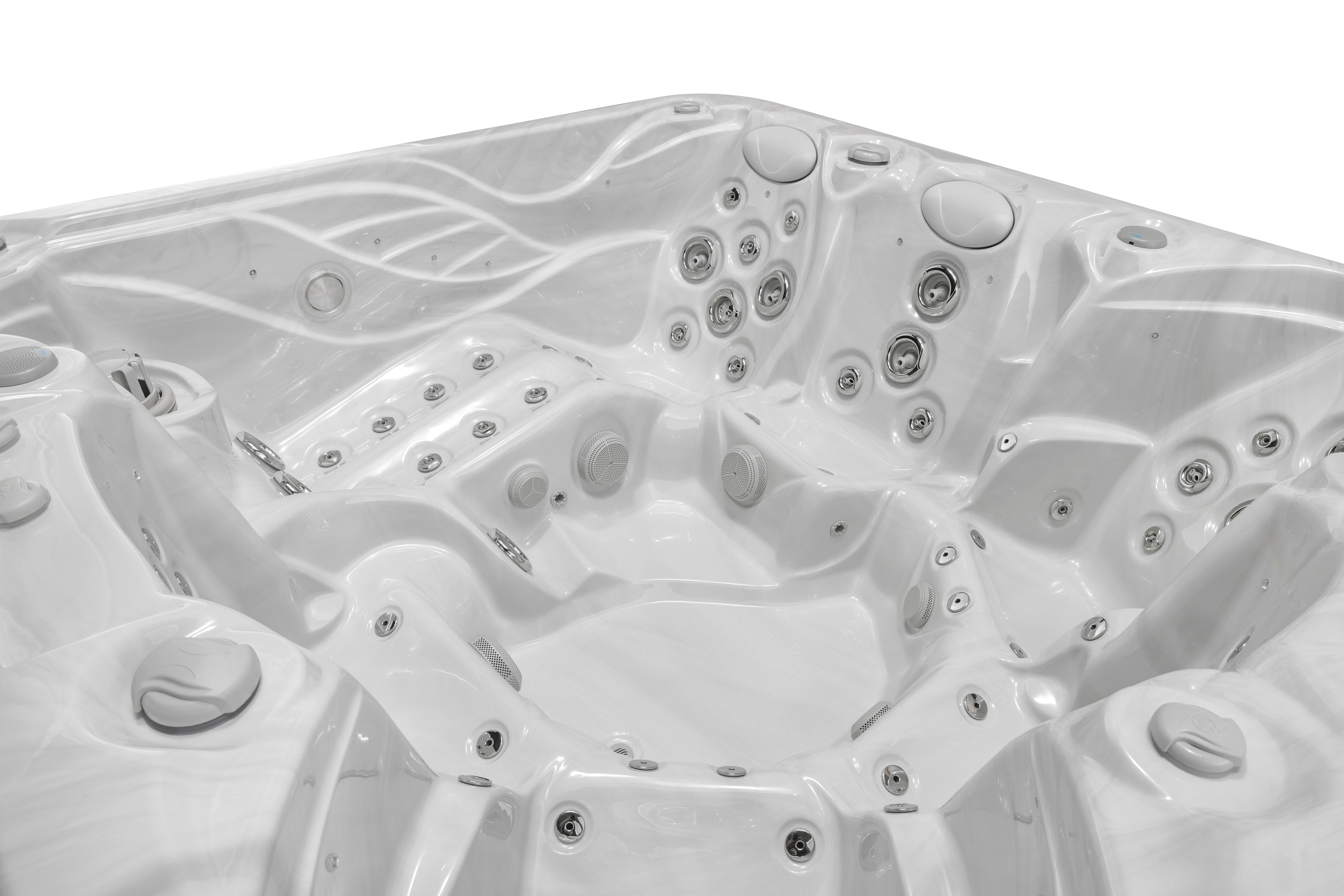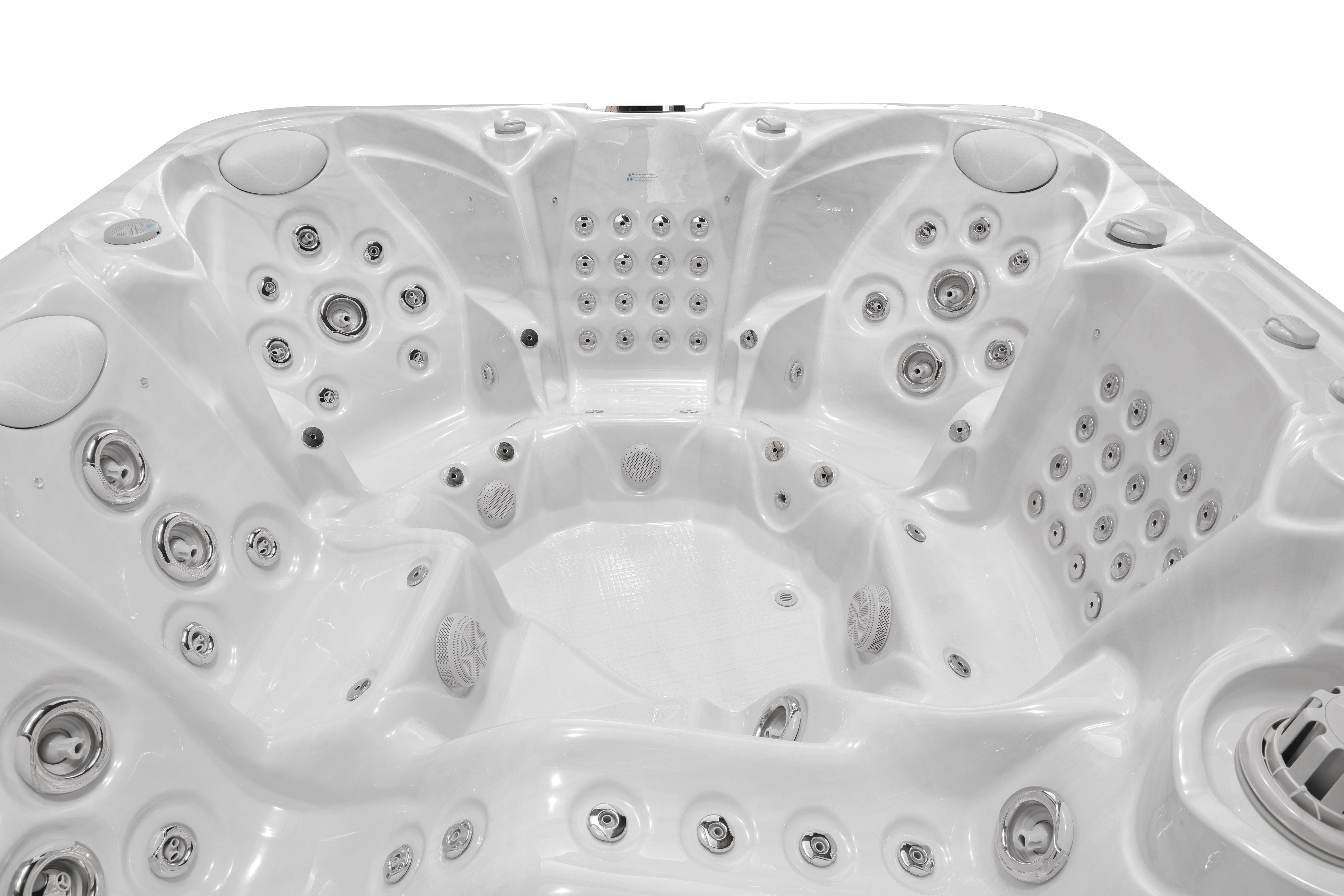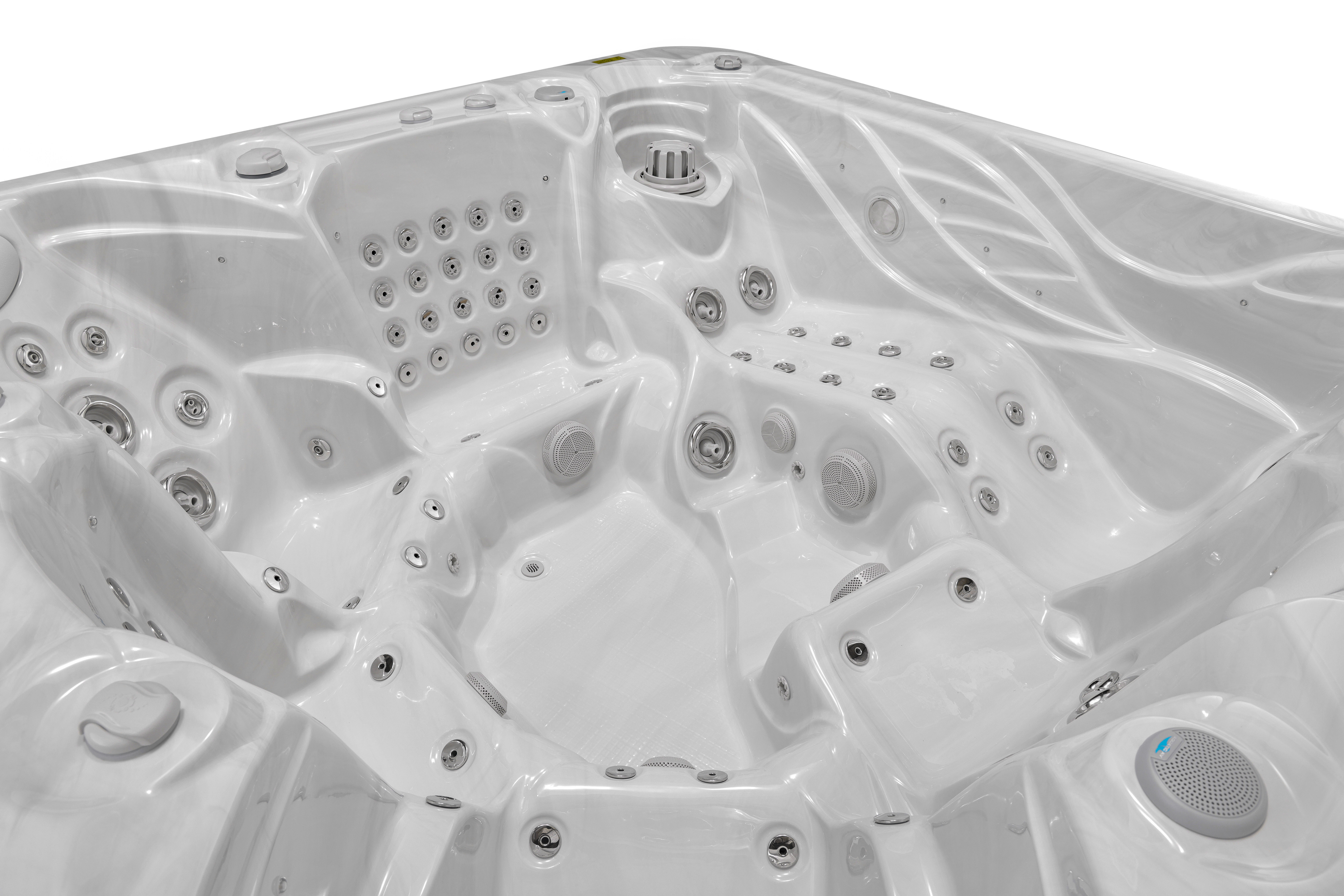 Чаша вашего спа-бассейна изготовлена из Lucite® Sterling Silver — это не просто акрил, а эталонный материал премиум-класса, производимый в США по запатентованным технологиям. В отличие от обычного акрила, который со временем может терять прозрачность и желтеть, Lucite гарантирует:
